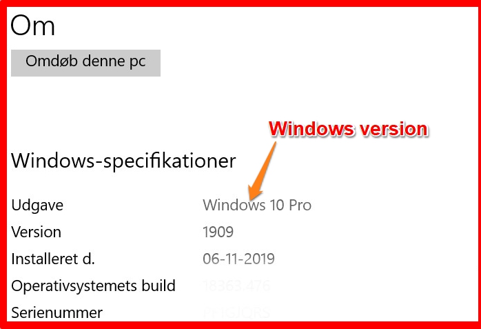 Du kan se hvilken windows version du har ved, at vælge start, indstillinger, system og Om , og du kan se oplysninger om hvilken version Windows du har: